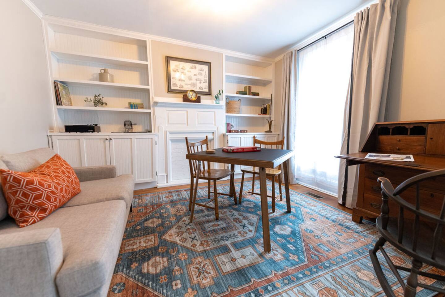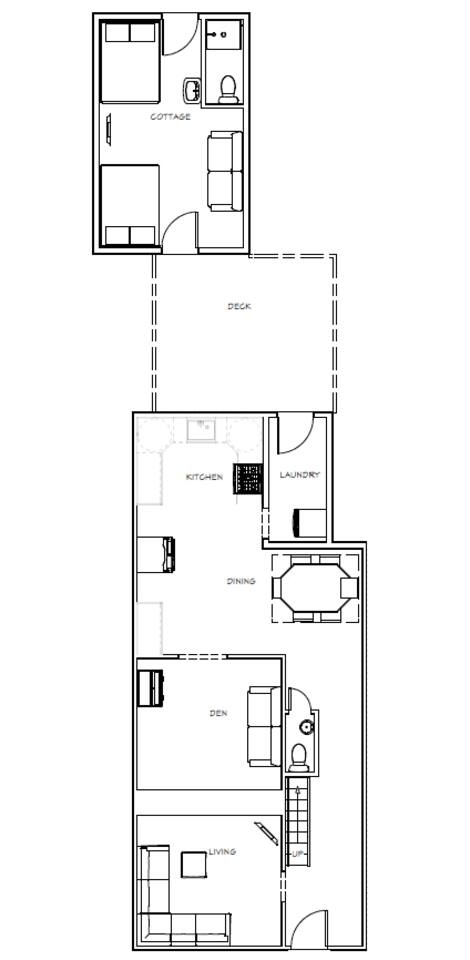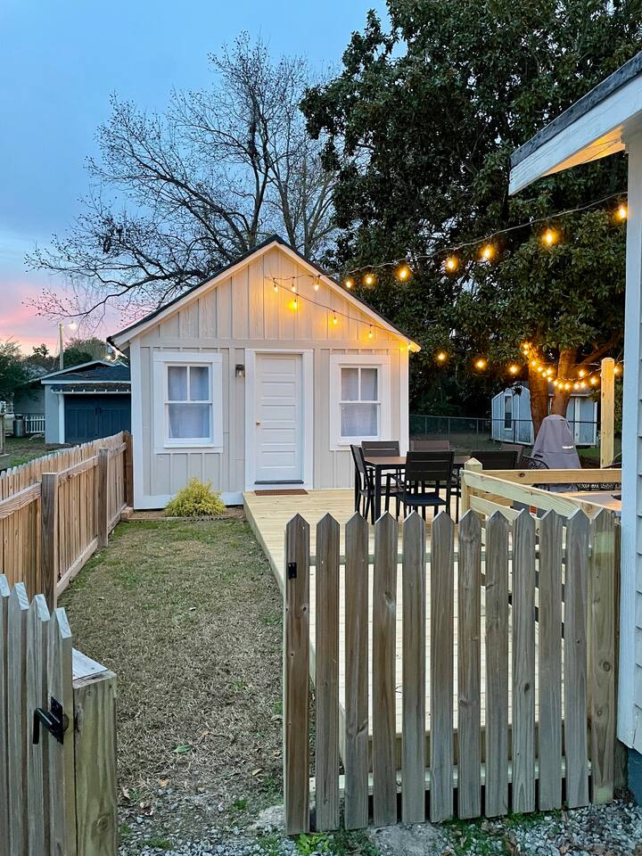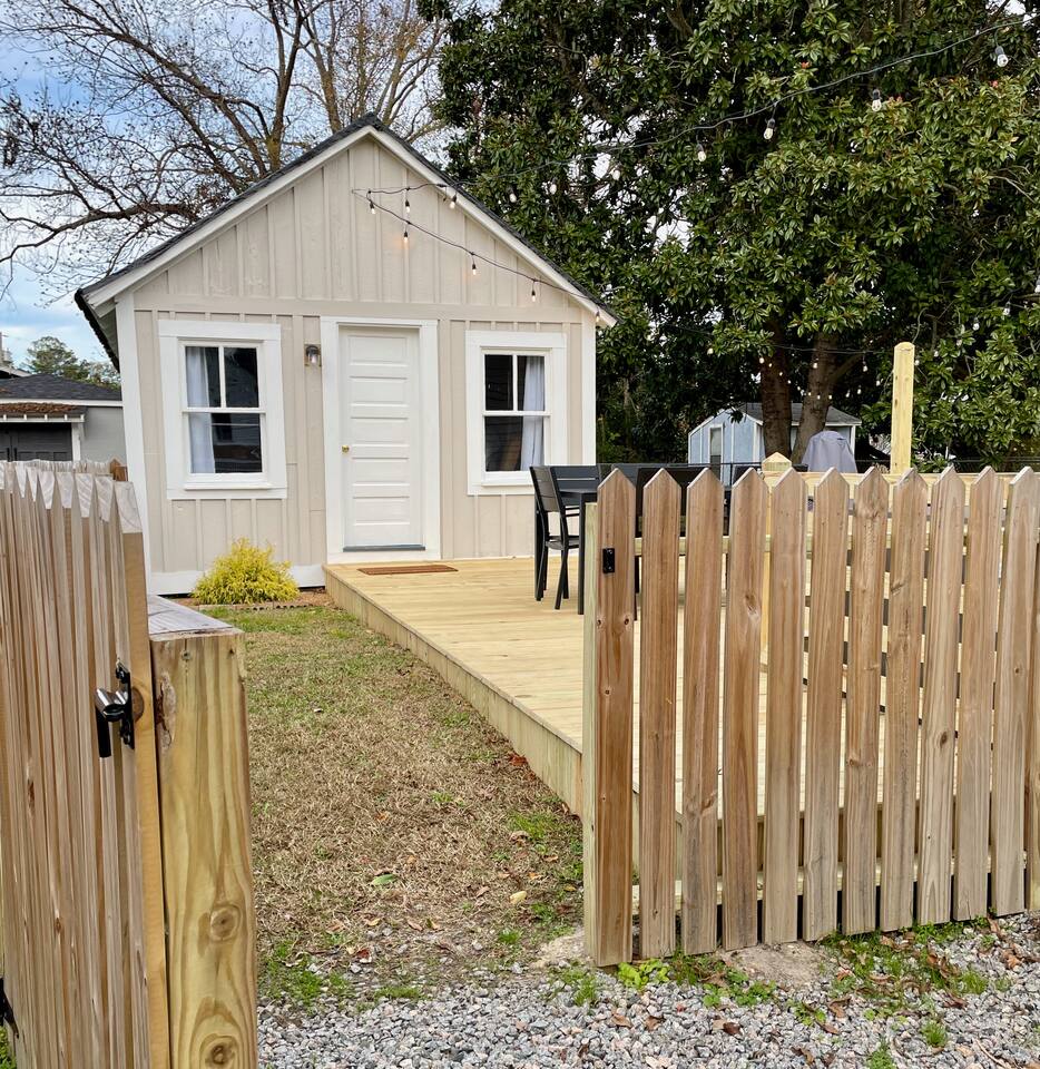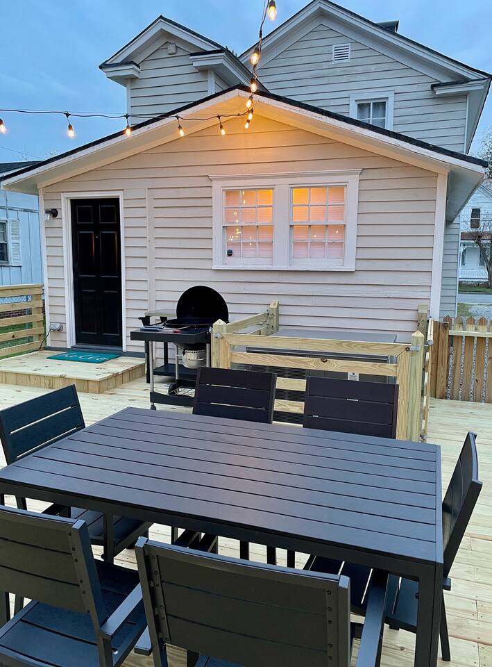 At Historic Edenton Stay, you'll find the main house is a classic side hall layout with living (with smart TV), library/game room with record player and a vinyl collection, kitchen, dining room, and half bath on the first floor. Two bedrooms and a full bathroom are on the second floor. The spacious outdoor deck with seating area and outdoor dining area, connects what we affectionately call the "cottage" to the main house. The cottage is a cool space with an additional two double beds, comfy seating area, smart TV, and full bathroom. The cottage has its own heating and cooling system. The two spaces together make for a great extended family stay where some separation is appreciated some of the time. The cottage is also a great place for people with mobility limitations to stay with only one step up onto the deck to the cottage door. I employ a professional cleaner and I share the cost of the cleaning with you to provide them a living wage and provide you a thorough cleaning between guests. If you are bringing a dog or two, please remember to include them when you're filling in your guest details at the time of booking. A $99 pet fee (per stay for up to two dogs) is included in the final price you see. No weight limit!